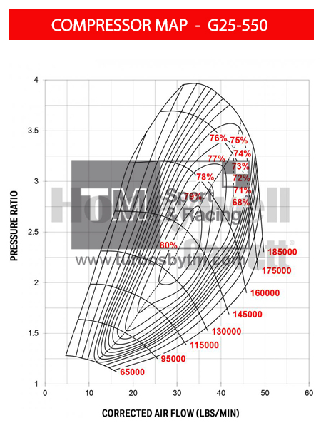 Compressor map G25-550 / TRIM 65 / A/R 0.70